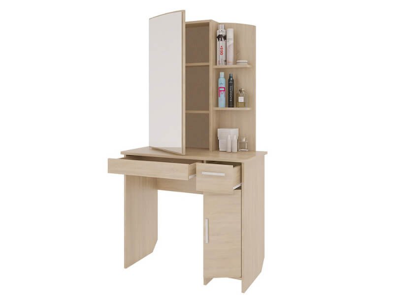 Состоит из: зеркала, полками открытыми и закрытыми, а также ящиками выкатными для мелочей